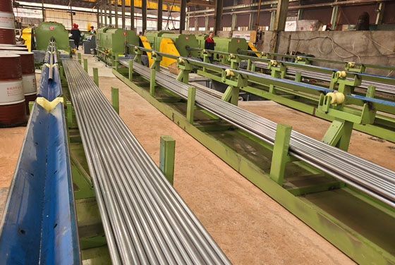 公司年產(chǎn)萬噸“不銹鋼無縫換熱管”;目前擁有φ20高精度高速軋機6臺,φ60高速軋機5臺;冷拔機 8臺(4臺一拉三冷拔機);全套渦流超聲一體探傷設(shè)備;水壓機等。